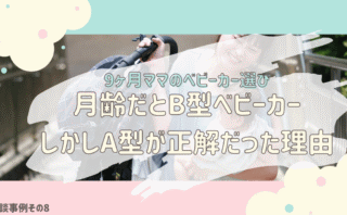 ベビーカー【個別相談】9ヶ月でB型ベビーカーを買うつもりが…A型を選んだママのリアルな話 9ヶ月でB型ベビーカー検討中の方必見!B型予定が、プロの助言でA型(スゴカルLA)を選び大満足したママの相談事例を紹介。ライフスタイルから導き出した「後悔しない選び方」や、売却を見据えた「実質予算」の考え方など、賢い買い物のコツを伝授します。 2026.04.23ベビーカー個別相談