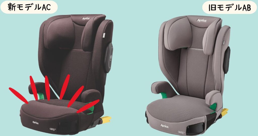 違いは「座面前側の素材」と「カラー」の2点!新型ACはお子さまの「座り心地」がより快適になりました!