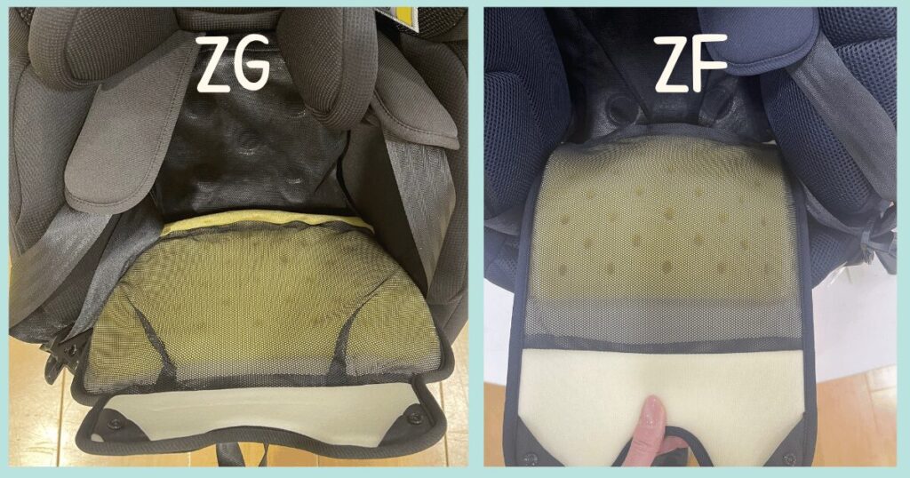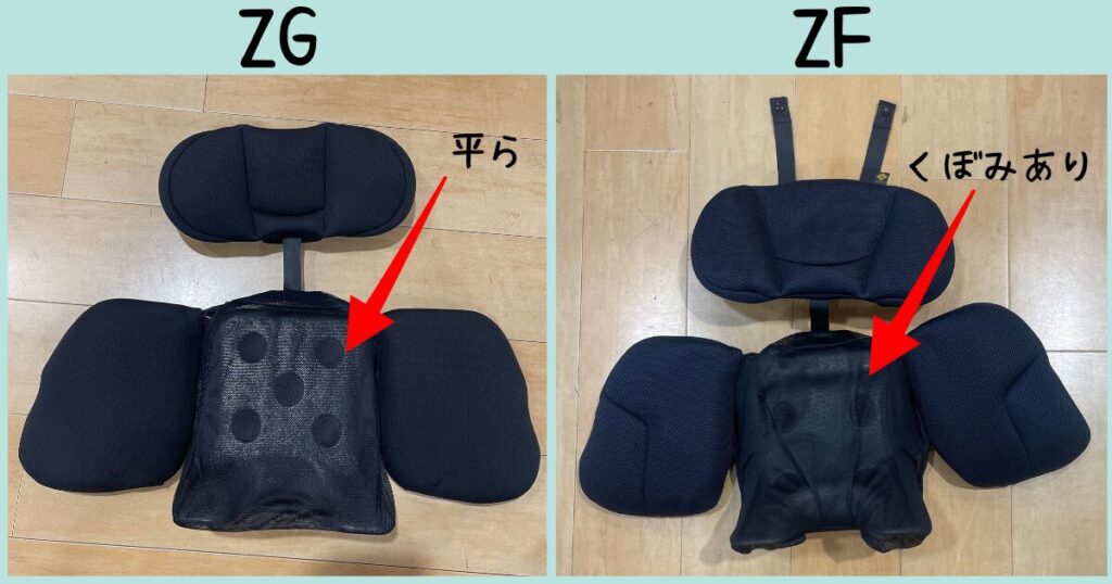 2024年モデルのZFでは「身長が65cmに達したらインナークッションを外す」仕様になっています(65cmまでは絶対に使用)。