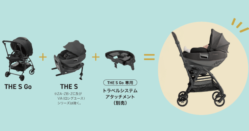 「THE S(ザ・エス)」は、専用のベビーカーとドッキングできる“トラベルシステム”対応モデル。車から降ろしたシートを、そのままベビーカーにセットできるから、寝ている赤ちゃんを起こさずに移動できます。